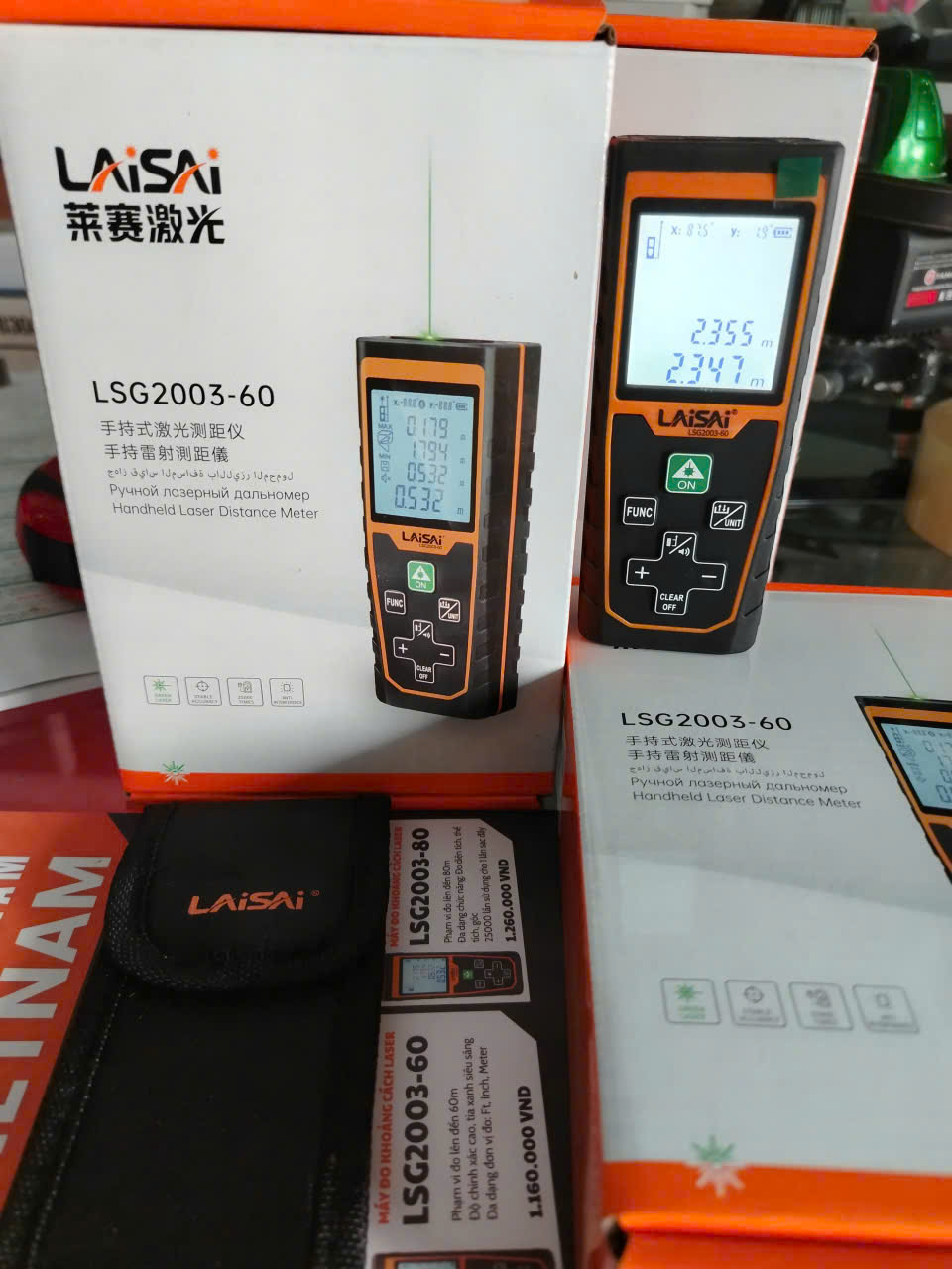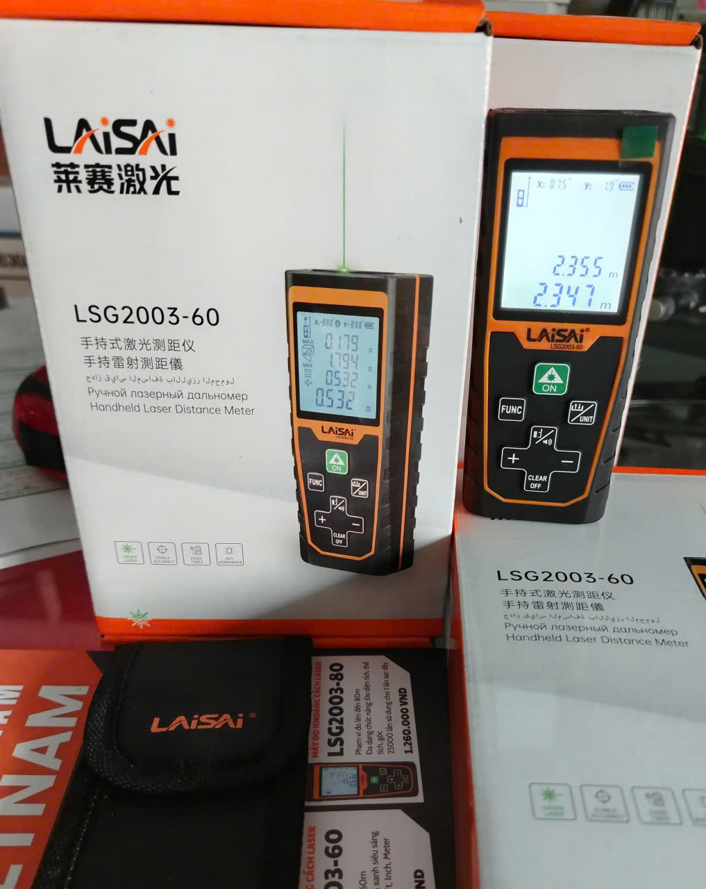 - Máy đo khoảng cách LAISAI LS 2003- 60M tia xanh, nhìn rõ điểm đo hơn ở những môi trường ánh sáng mạnh như khu vực ngoài trời.