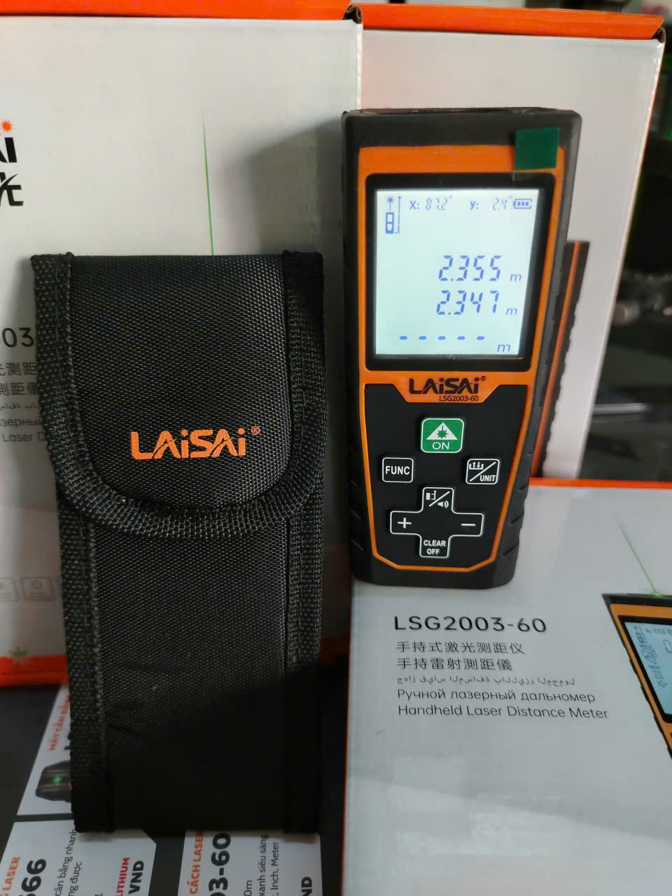 - Máy đo khoảng cách LAISAI LS 2003- 60M tia xanh, nhìn rõ điểm đo hơn ở những môi trường ánh sáng mạnh như khu vực ngoài trời.